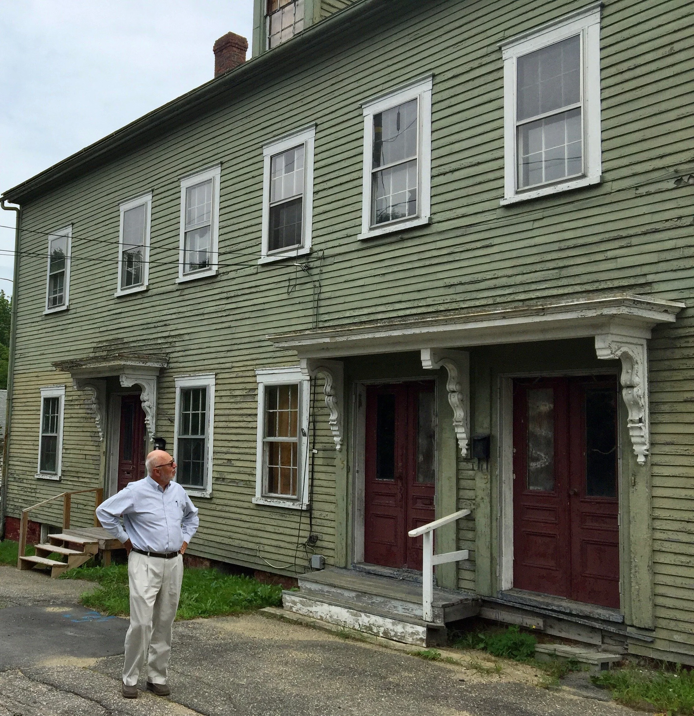 Christie in 2017 in front of his family’s tenement on Wentworth Street in Dover, New Hampshire. Photo: Naomi Schalit